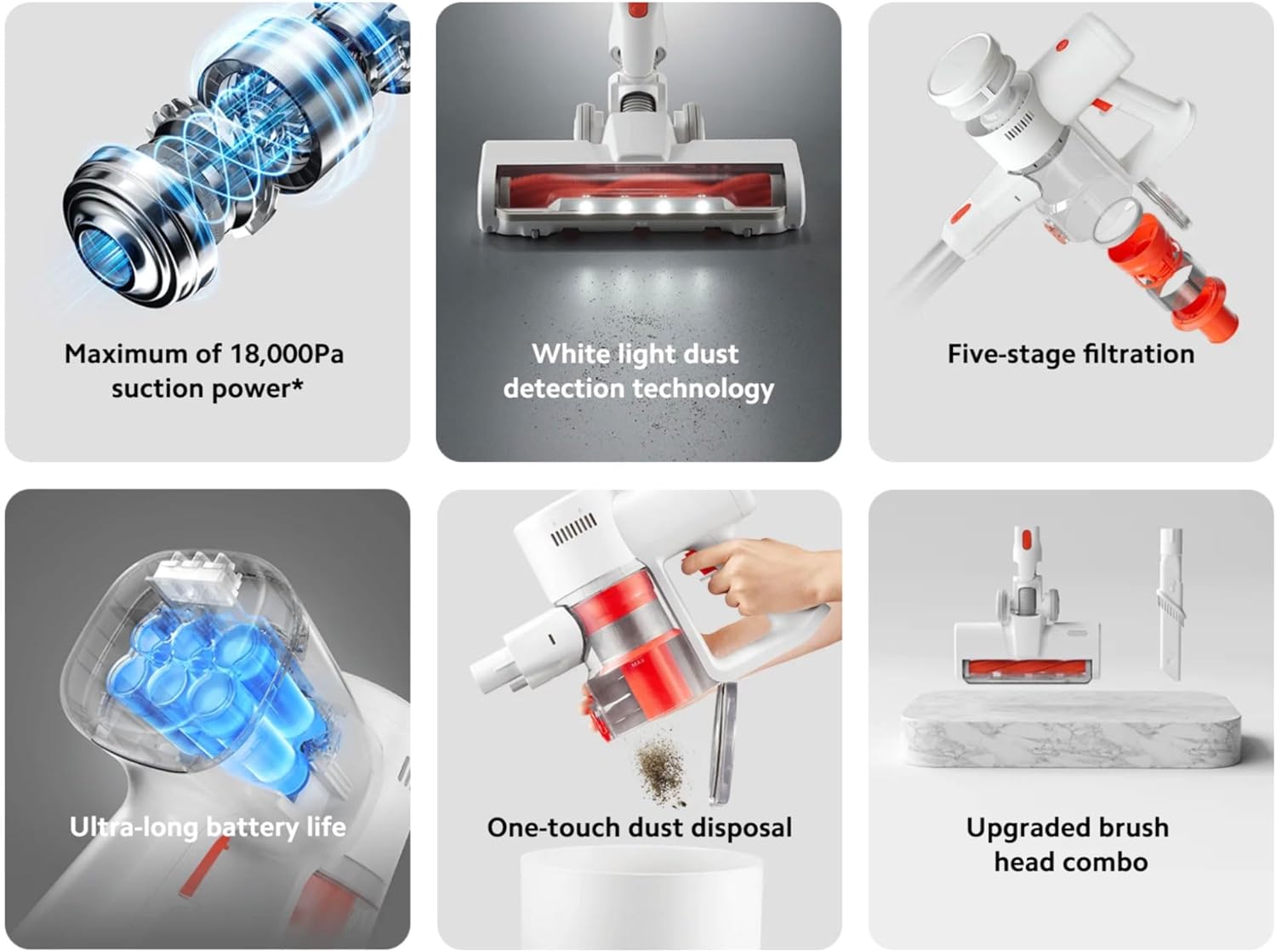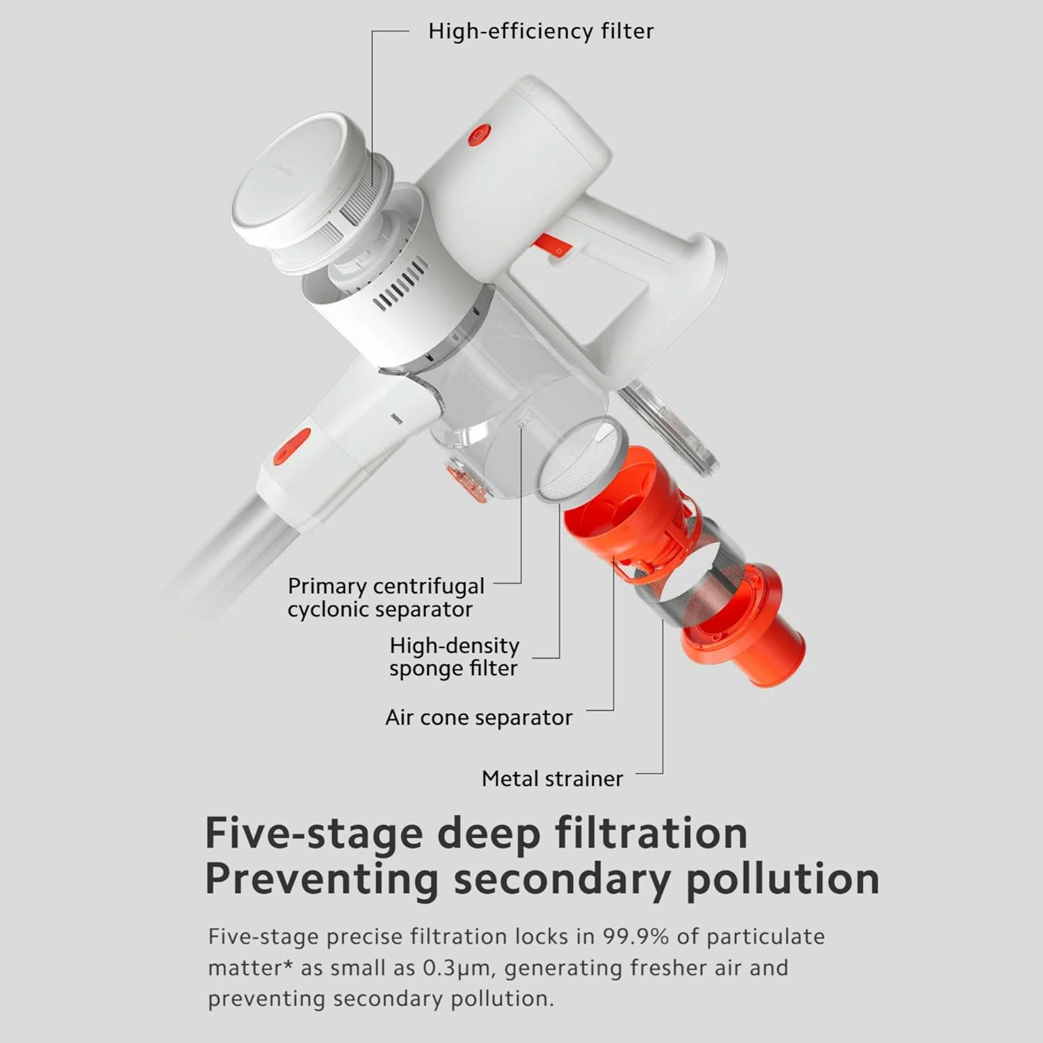 - Dust detection and deep filtration: The front-mounted LED headlights reveal hidden dirt and stains so you can clean dim areas more thoroughly. Five-stage precise filtration locks in 99.9% of particulate matter as small as 0.3μm, generating fresher air and preventing secondary pollution
